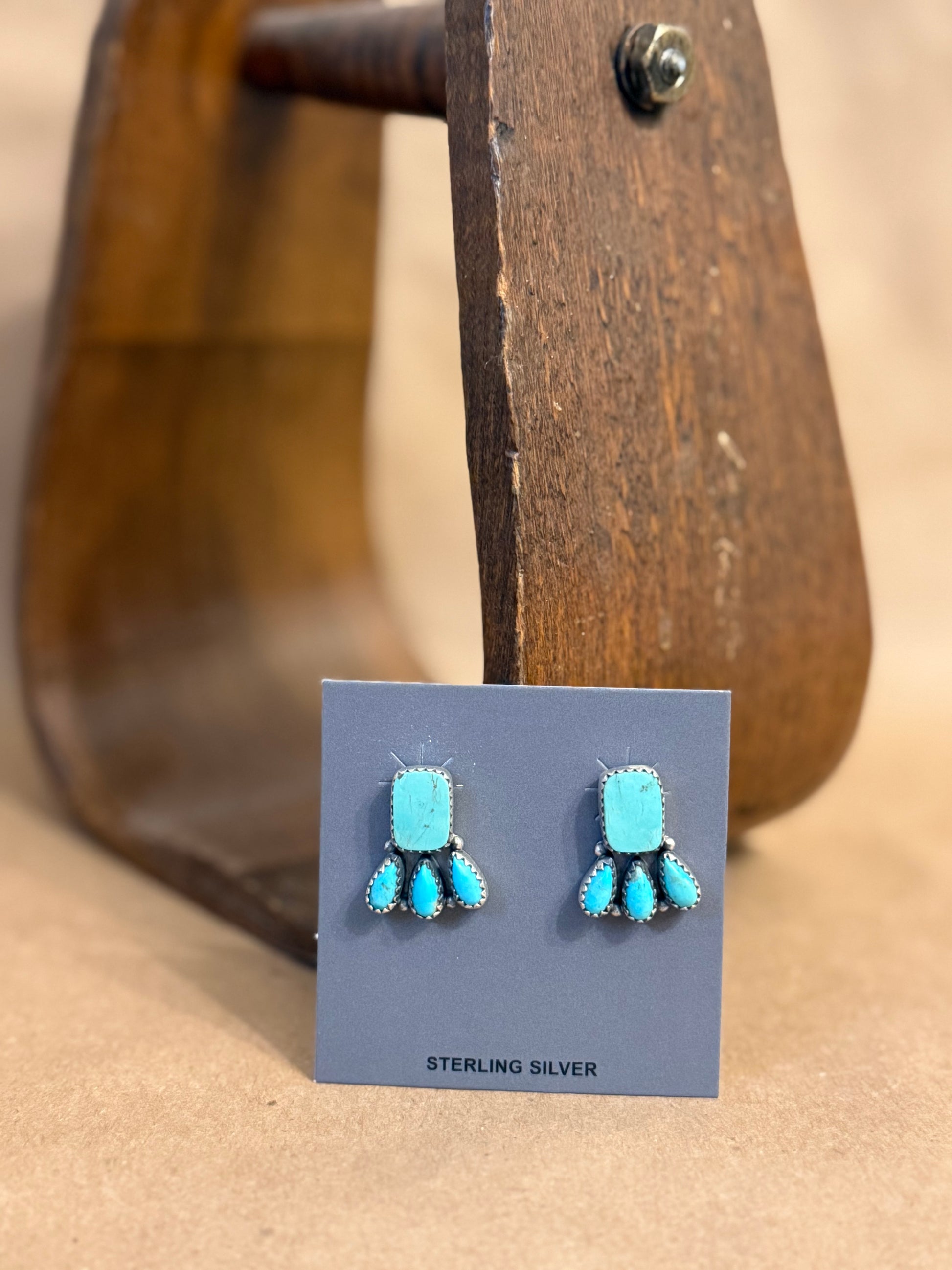 Kingman Turquoise Rectangle + 3 Stone Earring